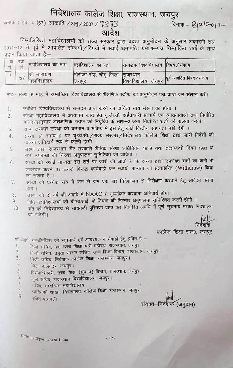 Welcome to Shri Narayan P.G. Mahavidyalaya, Chomu