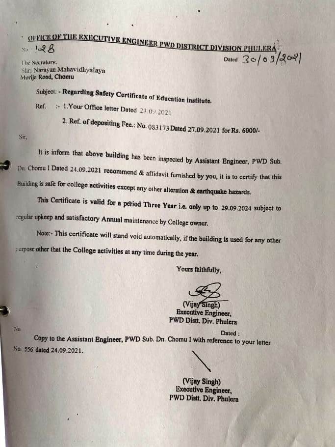 Shri Narayan P.G. Mahavidyalaya, Chomu committed to excellence seeks to educate its students to become responsible, productive and ethical citizens of the world with the ability to think creatively, reason critically and communicate effectively.