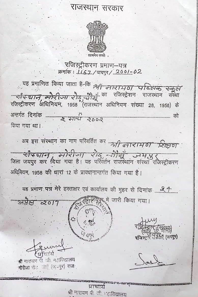 Realizing in importance of education We decided to setup on educational institution. The main aim or objective of this institute is to provide quality education to Students which can lead to upliftment of this society. This institute is situated at Prime location, Shri Narayan P.G. Mahavidyalaya, Chomu focus on over all development of students.
